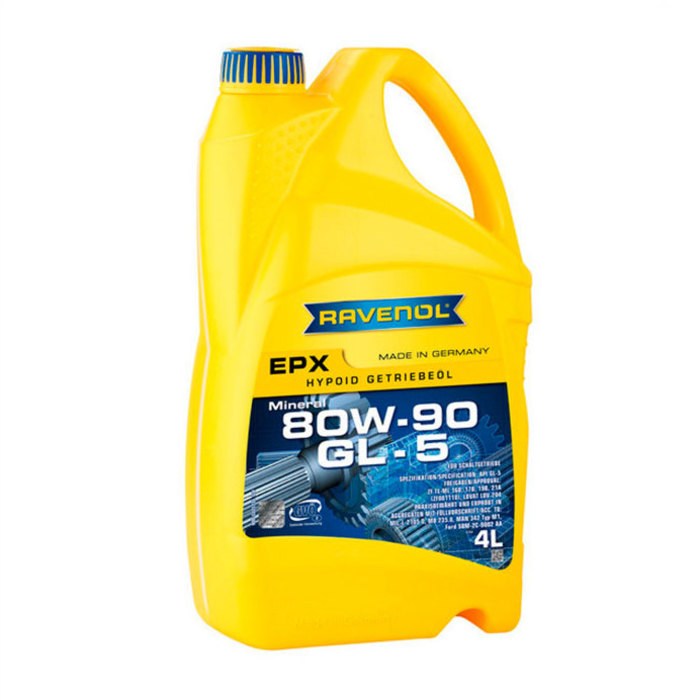 RAVENOL Hypoid EPX Getriebe-Oel SAE 80W-90 GL-5 – минеральное трансмиссионное масло, изготовленное в Германии на основе высокоочищенного минерального базового масла c добавлением комплекса специальных EP (Extreme Pressure) присадок. Надёжно защищает коробку передач и узлы трансмиссии легковых и грузовых автомобилей, внедорожной и спец.техники при экстремально тяжёлых условиях эксплуатации, включая эксплуатацию автотранспорта в городском цикле «Старт-Стоп». Обеспечивает долговременную защиту агрегатов строительной и грузовой техники в условиях высоких переменных нагрузок. Вязкостный интервал 80W-90 позволяет применять трансмиссионное масло RAVENOL Hypoid EPX Getriebe-Oel SAE 80W-90 GL-5 круглогодично. Предназначено для современных коробок передач, дифференциалов, раздаточных коробок, гипоидных передач задних мостов и прочих элементов трансмиссии, для которых производитель рекомендует применение смазочных материалов уровня качества API GL-5.